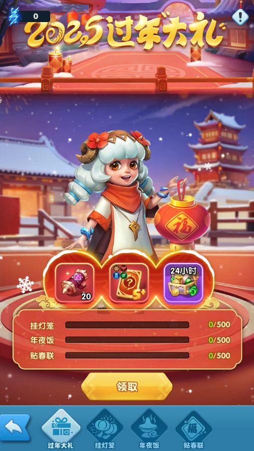 3、贴春联:活动期间,使用辞旧体力可增加贴春联的进度,完成对应阶段时可以获得阶段奖励。