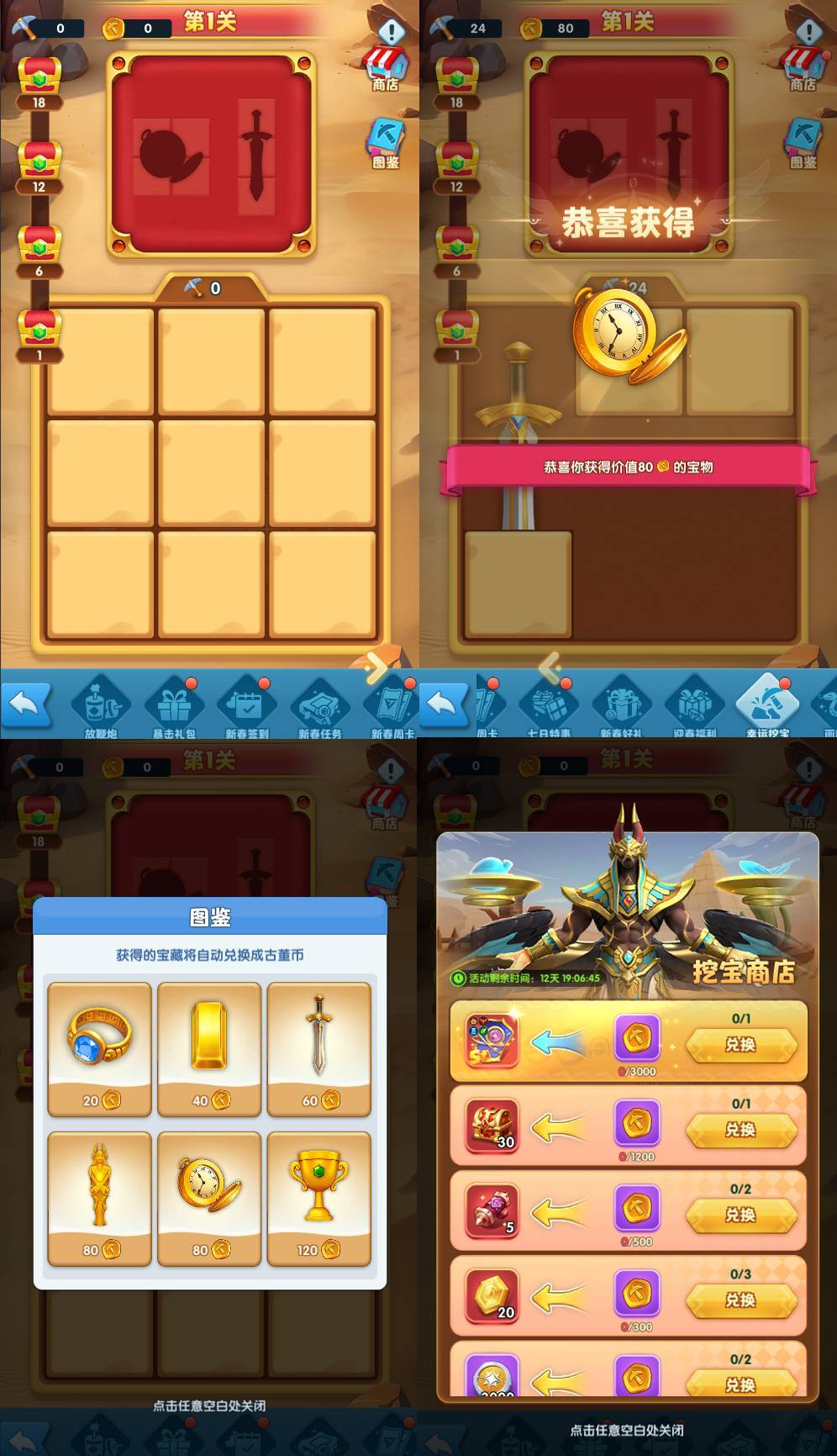 🧧幸运挖宝:活动期间,消耗鹤嘴锄翻开格子找到所有宝物,完成挑战可获得大量奖励