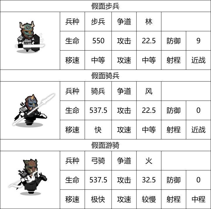 同时假面兵种自带争道属性,可以携带对应的争道兵器,对于部分初始兵种较为劣势的国家,有很强的开局转型能力。