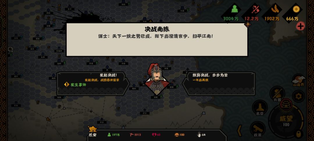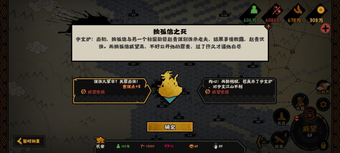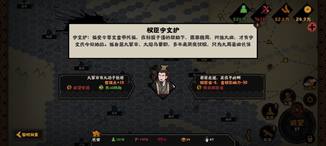 不过韦孝宽开局健康值直接0,如果要招需要延寿卡牌,不然第二次朝会他就没了。