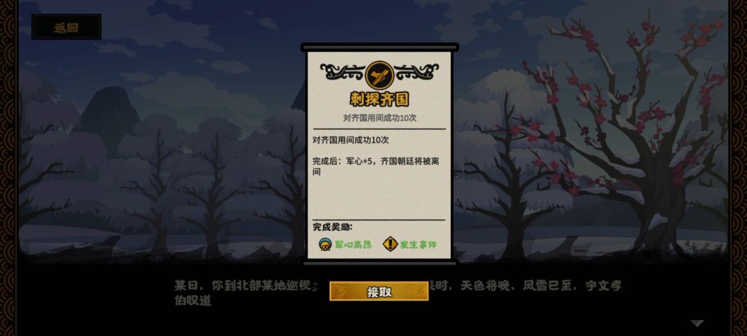 在这个剧本可以招募韦孝宽。有一个任务刺探齐国用间10次。