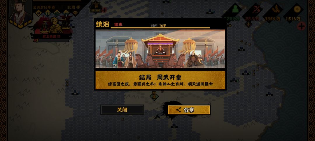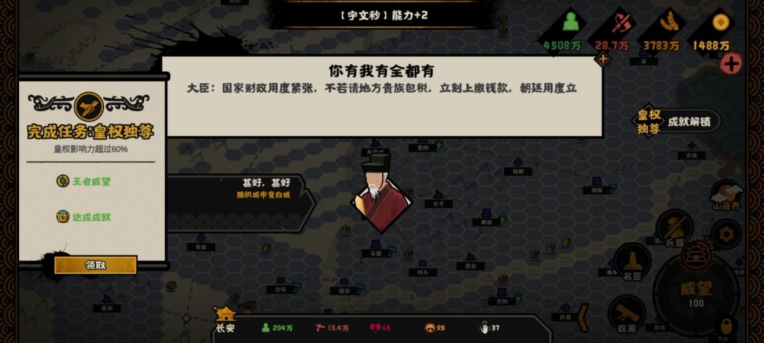 这个皇权独尊成就就完成了。高级结局是50%就行了。