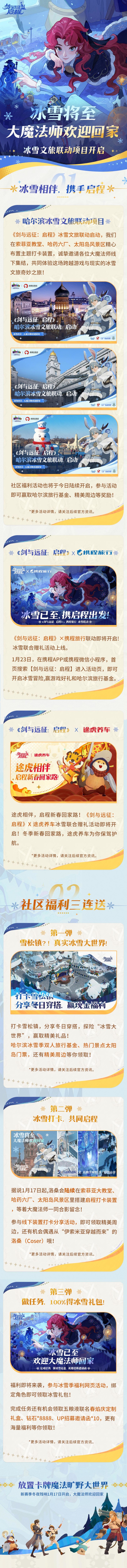 ♦ 《剑与远征:启程》X 携程旅行联动即将开启,冰雪联合赠礼活动上线!根据指引进入活动即可赢取好礼~