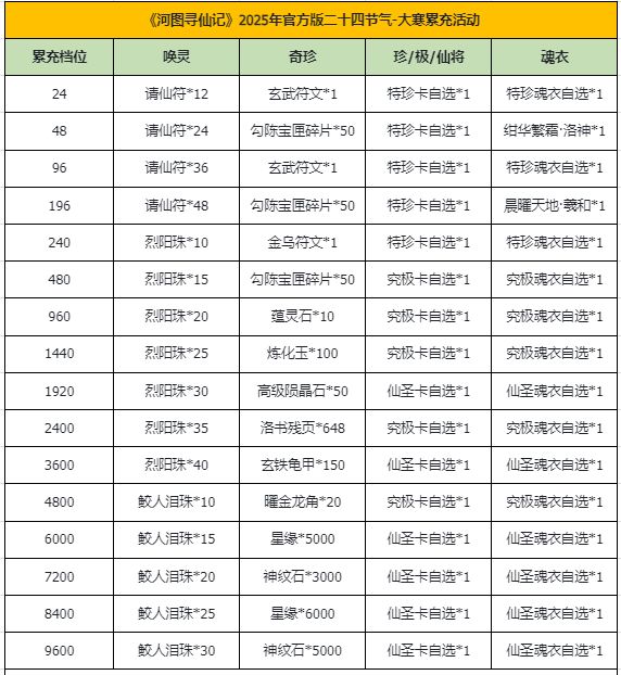 1、以上累充只计算真实充值,代金券部分不计入线下累充档位,游戏内累充档位不影响