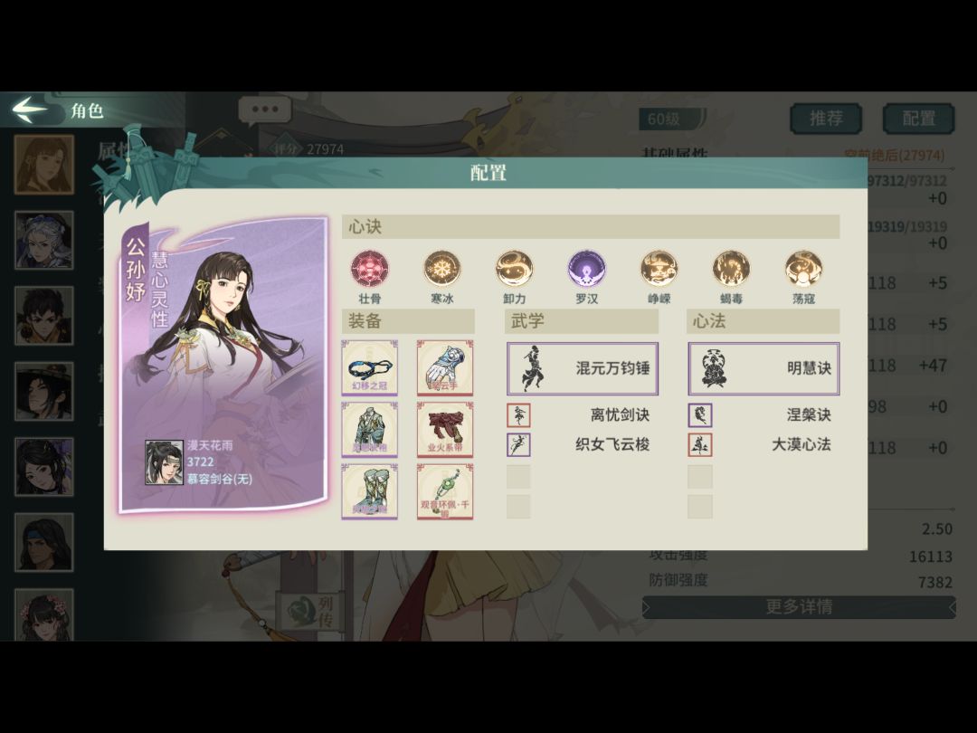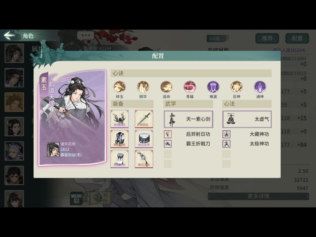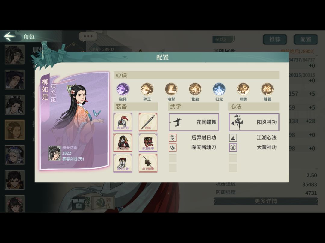 满配柳如是,舍弃破阵头换破阵心决提高命中,酒狂属性太差而且连动不稳定就没上了,可以考虑鞋子换天枫,或者衣服换邀星应对一手恒山。这套也可以换辅修疾风迅雷剑,电掣换破幻,省一个电掣,同时拉高命中克制闪避怪,但打黄鸡效果稍差。