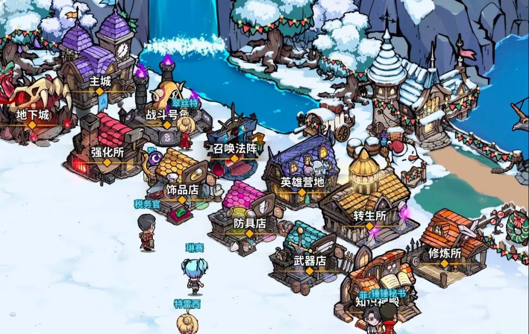 我们会发现作为镇长的自己还没有小英雄身上钱多,那我们肯定想着从他们身上捞点油水出来。我们可以把打不过的高级BOSS拉出来(注意不要打赢)然后故意送死,这样小英雄就会不断的跑回去治疗或者喝酒,这样就可以榨干他们啦。