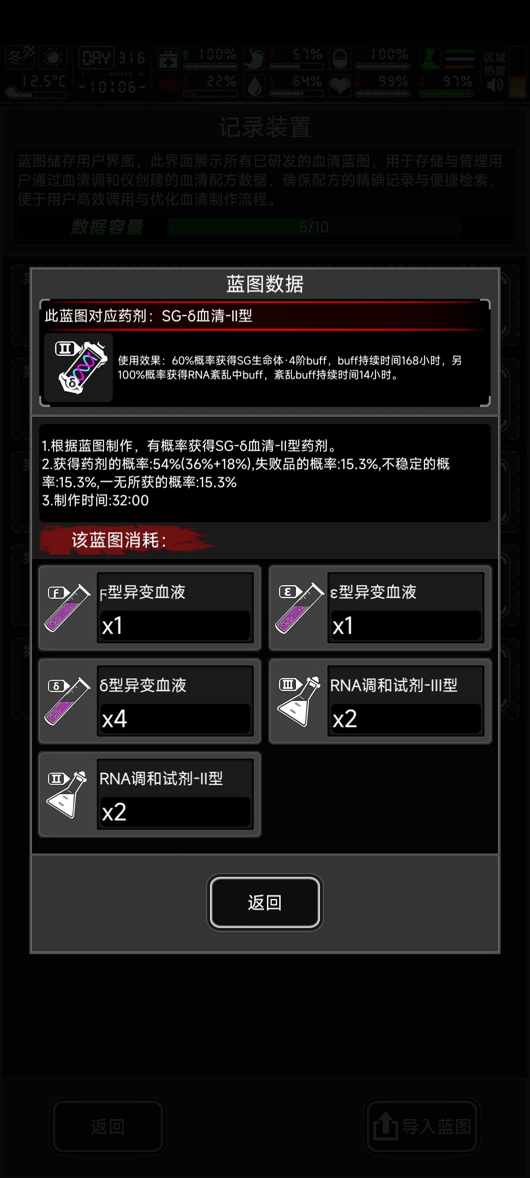 血清配方,跟时间有关,一样的材料算的时间越短会出更高级的SG血清,这个还可以出4级ⅳ,ⅲ型