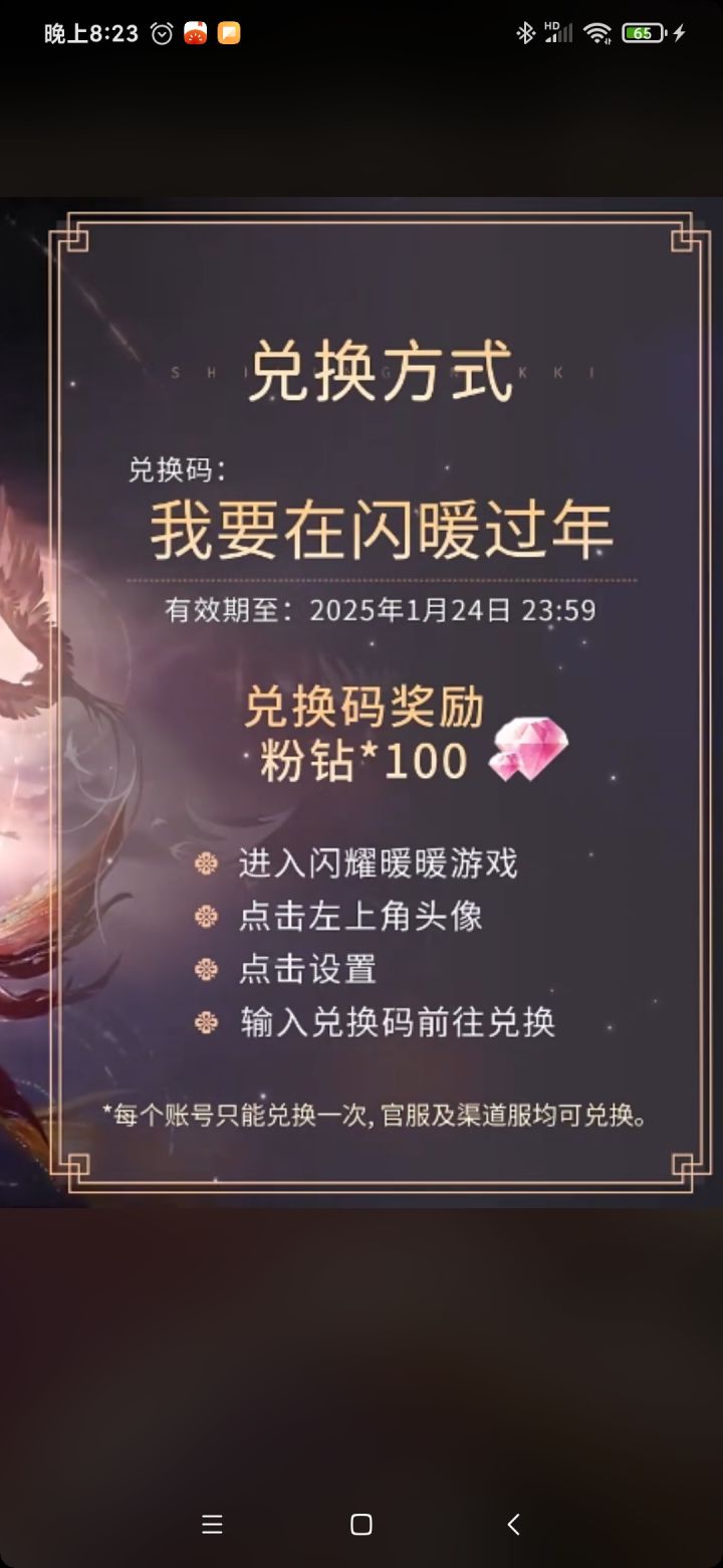 有三个兑换码,后边是一个福利汇总,能免费的3500粉钻加两套小暖服饰,和25个限时感应券和一些幻色道具,和暖暖财神套