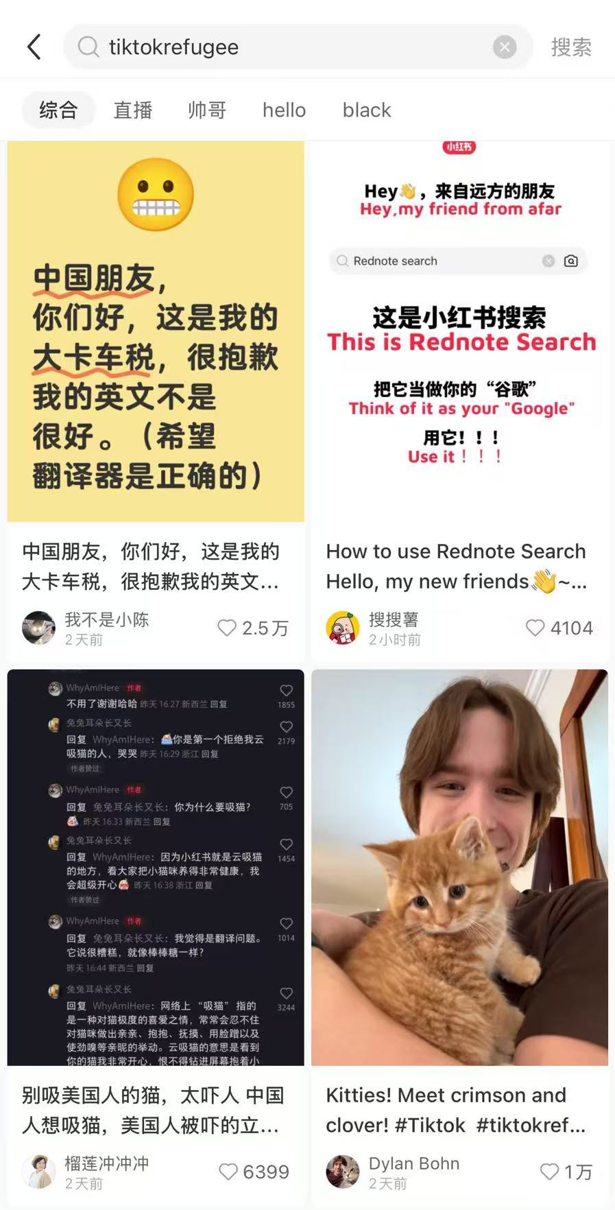 打开小红书,数条#tiktokrefugee 标签下的帅哥美女映入眼帘。