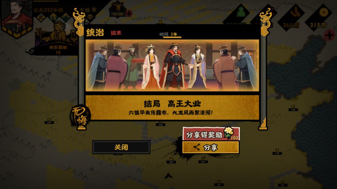 完成主要目标,即可通过施行对应政策,达成普通结局——敕勒歌