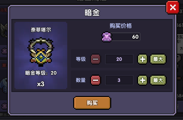 通关第60关小秘境后,资源本解锁暗金水晶,小秘境地图右边出现暗金商店,挑战该类型资源本,掉落的材料用于兑换暗金装备。