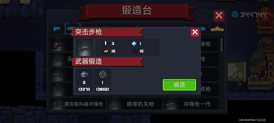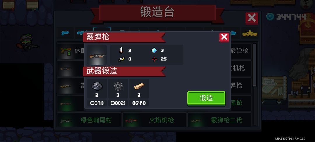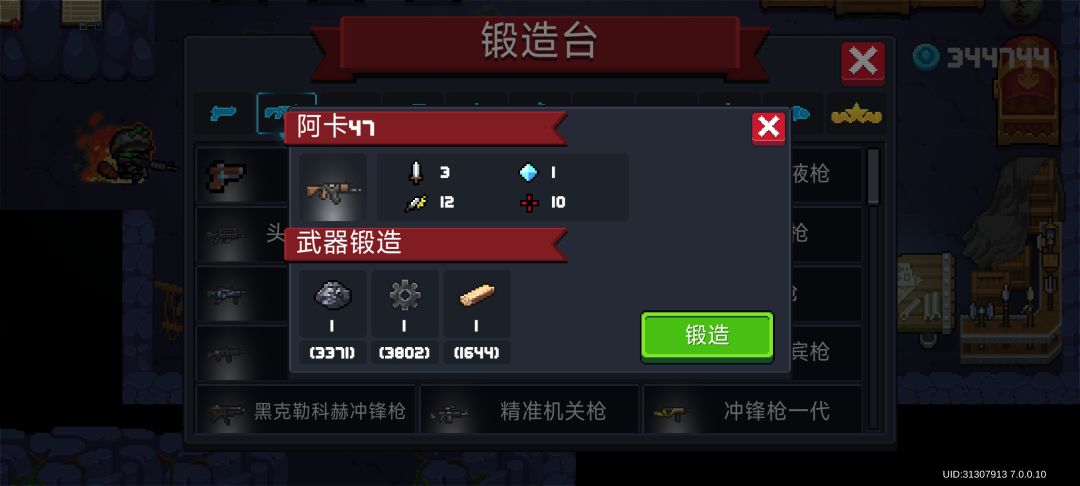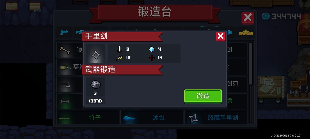 左轮手枪,沙漠之鹰,先驱者,突击步枪,雪狐,阿卡47,迷你乌兹,干草叉,弹弓,霰弹枪,弓,手里剑