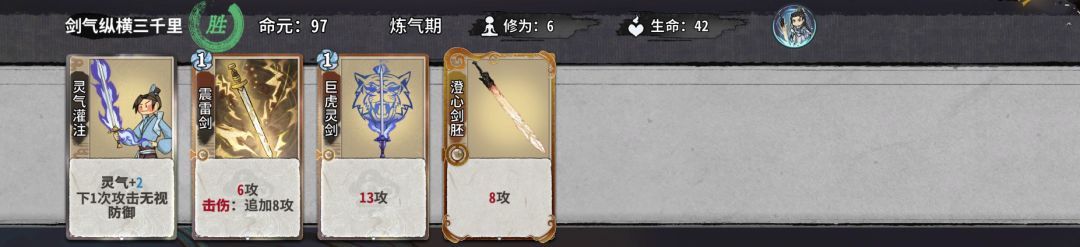 炼气期,开局尽量不d,因选完副职再d,d光找竹子,一张即可停手。竹子是前期过度的绝对核心,是一张可以用到化神的牌。其他留灵气相关的牌,有灌注加两张耗灵气的牌最好。