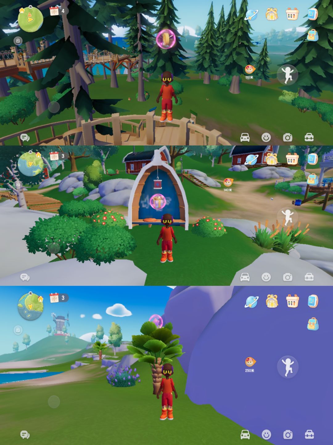 粉红泡泡位置分布:图一地图的蓝色标记(15处),分别在温泉山3处 森林4处 渔村2处 花田3处 小镇3处。 溜溜橡木:5号房 萤石:1号家园