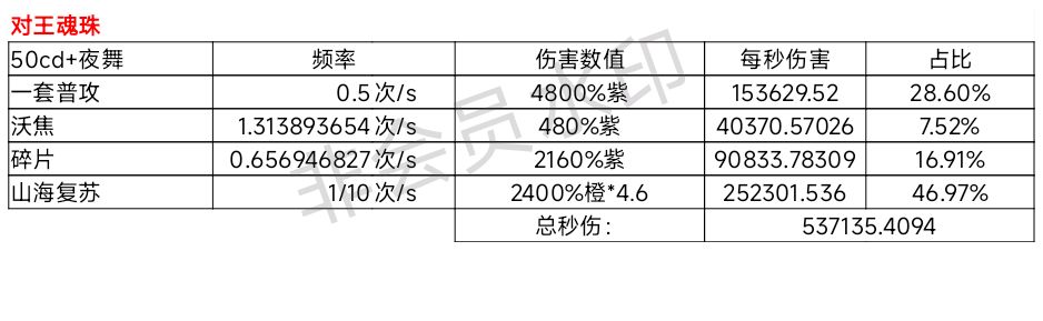 在不计算任何倍率下,对王和对群魂珠的伤害及占比如下: