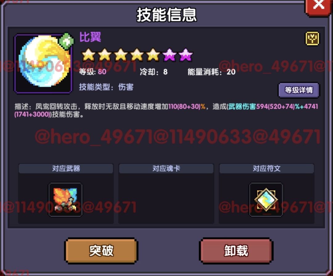 3、武器4星效果【双生】,普攻被强化,普攻范围增大,造成橙+紫技能900%的伤害,星级和等级继承紫技能。