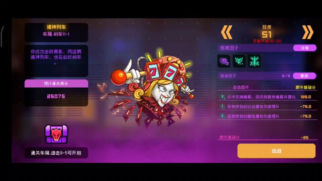 怪物伤害提升(反正一下就死,加点分少打几把,有毒雾选毒雾,火披风不怕),电近战增伤(建议选,不然打太久容易失误)