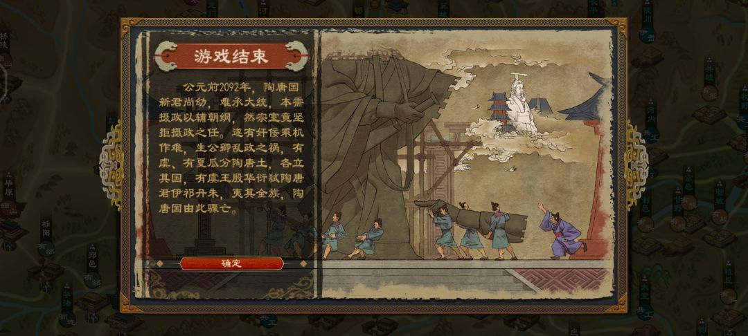 帝尧骤崩,丹朱幼年而立。陶唐内有蠢蠢欲动者共发难,以太师殷华衍为首弑帝丹朱又戮尽王族。割陶唐氏地合立有虞国,有夏国。