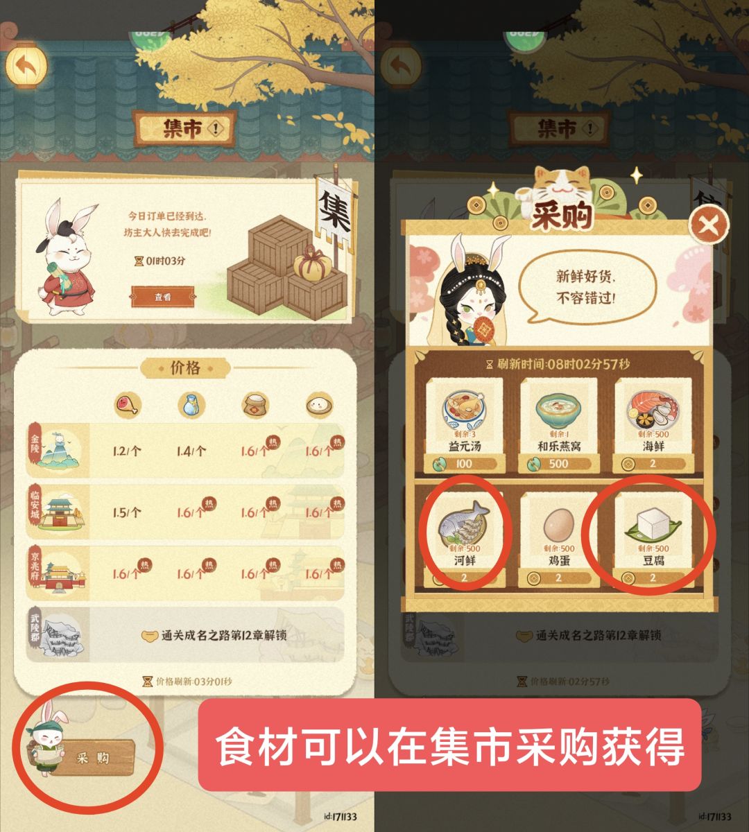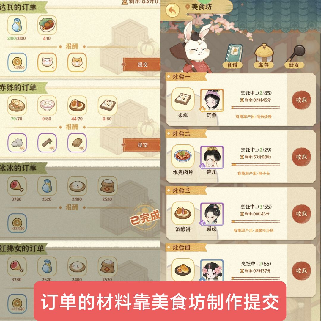 集市订单12点和20点会更新,记得及时查看才能获取大量金币和物料!