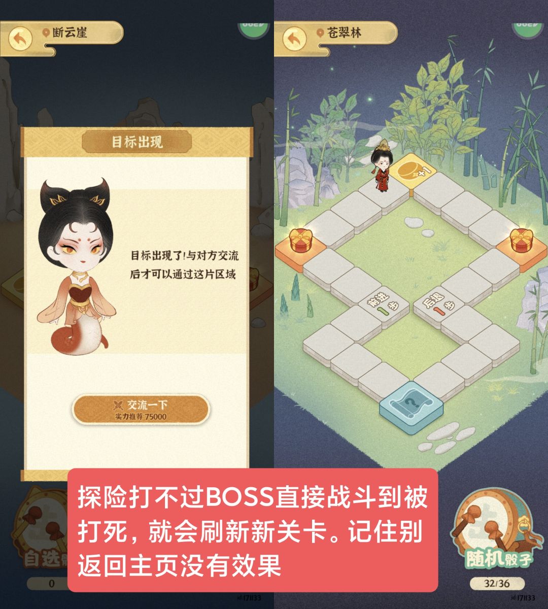 探险难度上升有可能遇见BOSS打不过只能换地图!