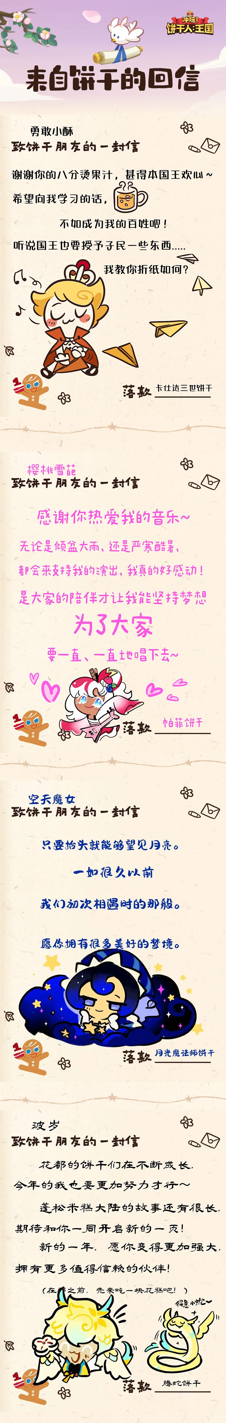 不过,饼干们想传达的,还远不止这些哦~在春节版本的特别活动中,也藏着对于饼干朋友心意的回应,究竟“你推的饼干”会诉说怎样的话语呢?还请期待!