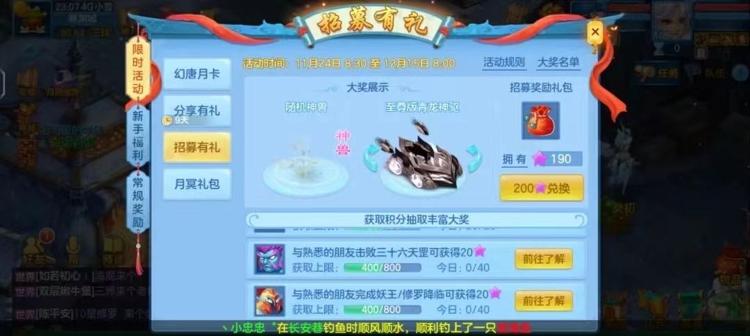 9.周一到周五:门派论剑,有招募活动的时候带回归,有积分