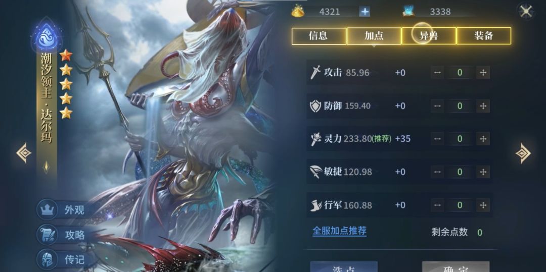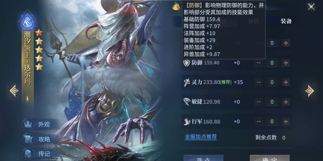 最后判断一个英雄养成是否合格除了基础的英雄等级和技能等级外,还要看领悟技能、装备技能以及异兽祝福是否契合英雄本身。这些都是能在英雄个人界面的攻略和异兽恩赐预览中查看。