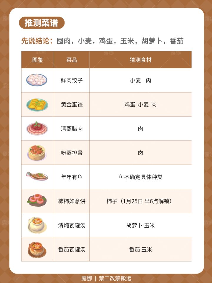 心动小镇 菜谱食谱出了 囤食材啦 肉有救啦
