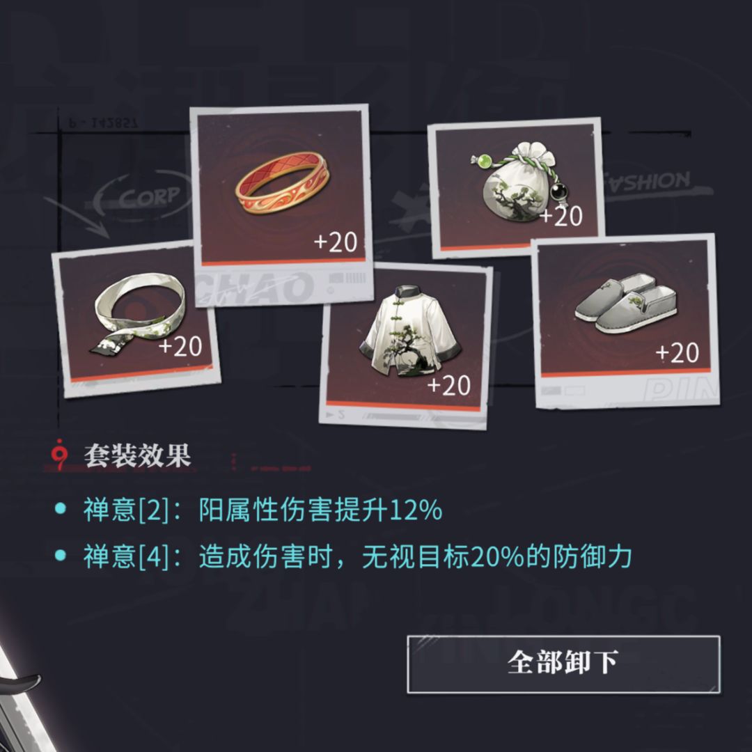 潮品选择禅意阳伤套,属性选择攻伤爆。二命堆30充能即可,零命和一命需要再多堆一些。
