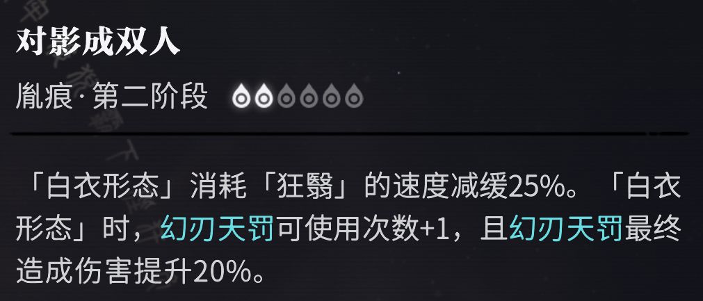 白衣形态需要造成伤害充能后进入,为角色主要的伤害来源,但持续时间较为短暂。