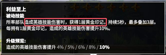驻防时,如果剩余兵力大于50%,为军团提供一定的攻击力增益。驻防车头专用技能,对于希望使用法师队伍驻防且需要做车头的玩家建议点满;对于不做车头的平民玩家来说,该技能的作用性不太大,保持1级即可。
