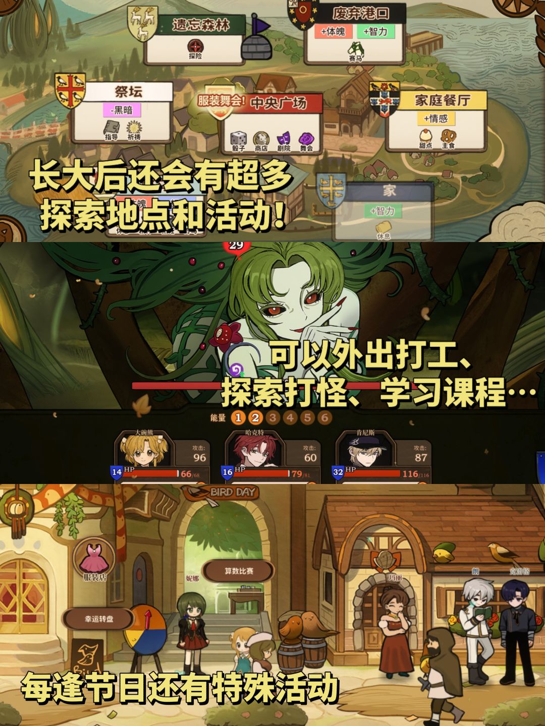 探索打怪、约会暧昧、赛马种田、孤身走暗巷……每逢节日还会有特殊剧情和活动[派对R]