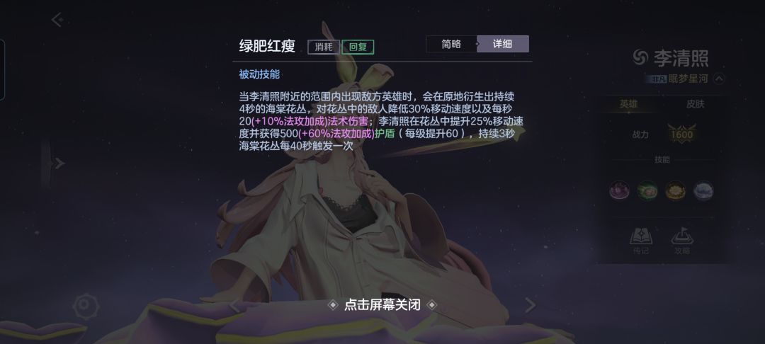 3.被动可以称为是李清照的一大保命技能了,但要注意,冷却时间为40秒,没有被动时可千万要小心。