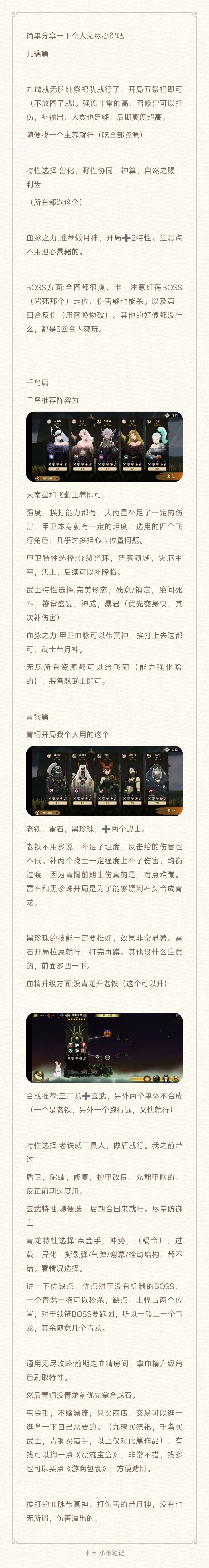 无尽个人的一些通关阵容