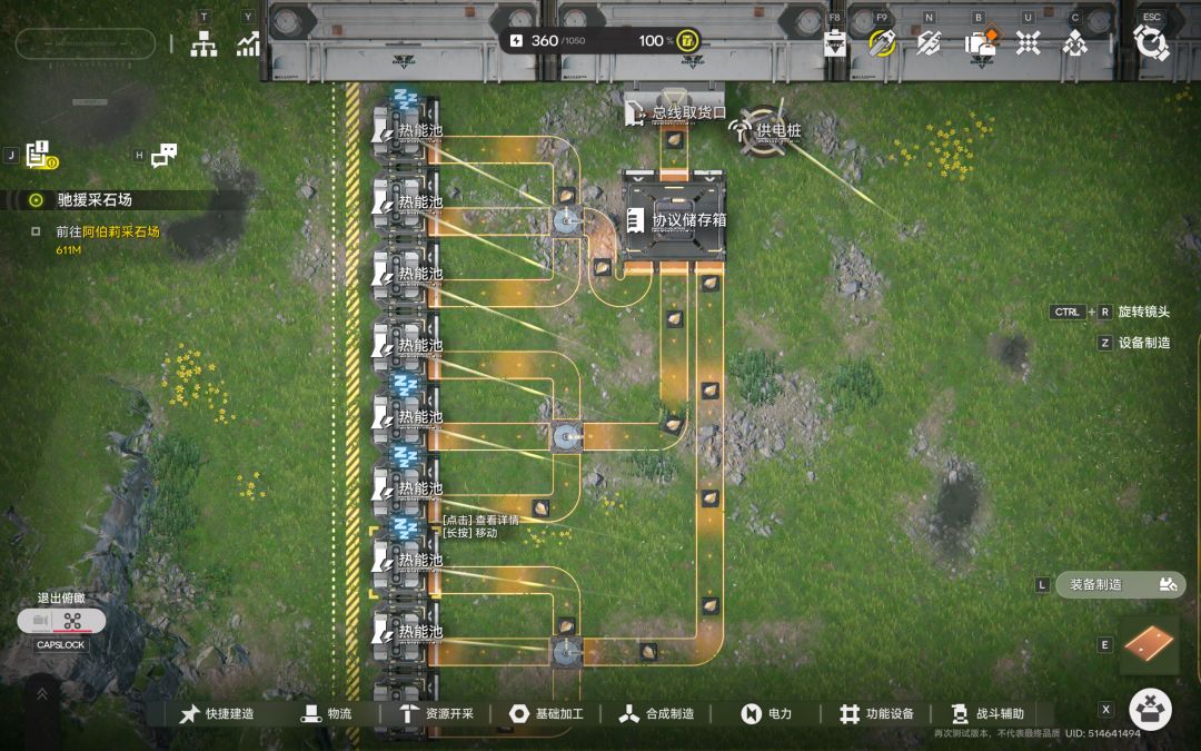 5.如果你发现的的总电量总是变化是正常的 因为供不应求 这个时候直接往储存箱里手动放满原石就一段时间内就能达到最高效模式了 或者直接加装取货口的数量使他输出效率变高 不过效果是肯定不如你手动一次性加一堆来的要好的