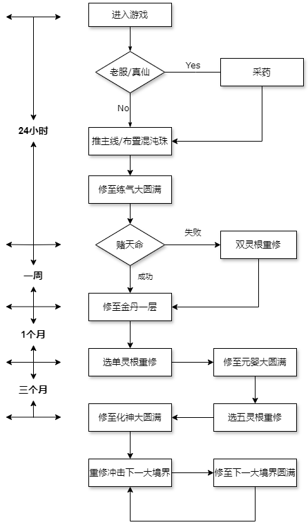 该流程图为修炼总纲,再不出现意外并通过快速修练法,保守估计最快一个半月可达化神,4个月炼虚。