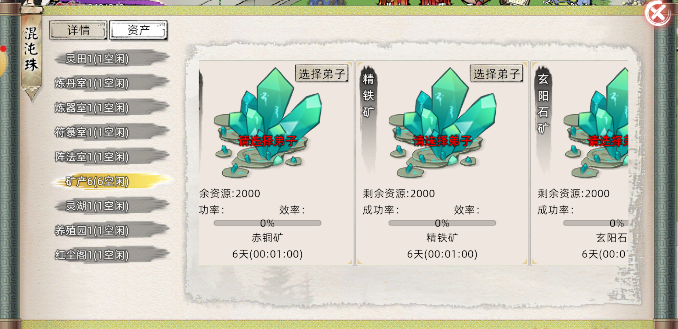注:萌芽期药草采好后要30分钟内在灵田种上不然药草会死掉。打开右侧混沌珠→资产→灵田→点击灵田→选择种子,找到萌芽种上。