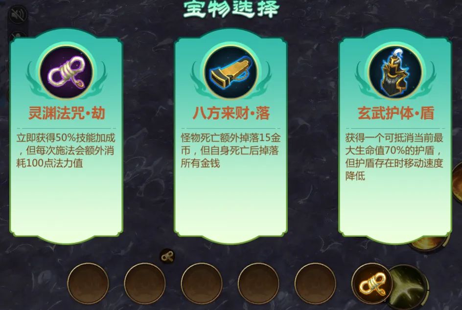 如果在灵阵的战斗中,有宝箱掉落且仙术师成功拾取,那么将会获得一次宝物选择的机会,凑齐同种宝物将会解锁强力的增益!
