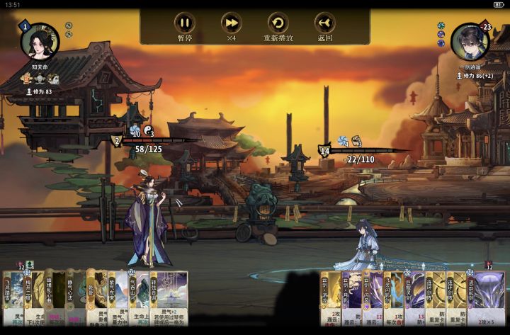 化神:核心卡气吞,梅开,紫气,还有琴师的两张化神卡,困仙不上也行,因为我们自身也需要再动。碰到高爆发一动回春,多段上乱心。被动名刀打出来后一般梅开静气,看情况梅开回春,乱心。