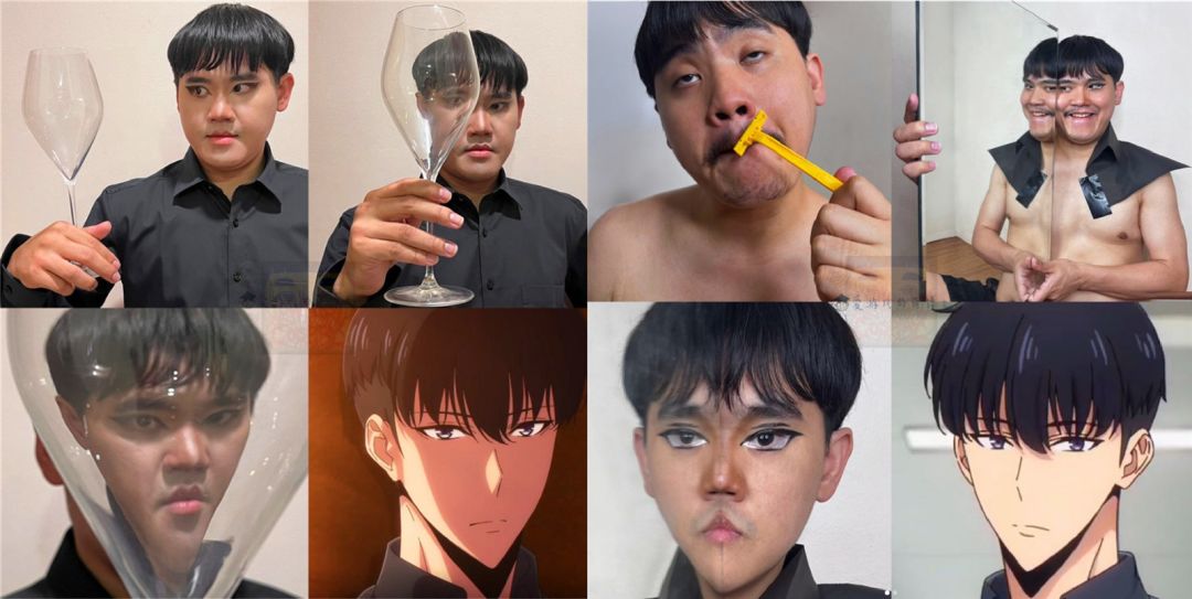 近期,改编自Chugong原作、DUBU(REDICE STUDIO)作画的同名漫画作品《我独自升级》电视动画第二季《我独自升级 -Arise from the Shadow-》正在热播,其中男主角能力升级后,居然连身材和长相也一同升级,仿佛变了一个人,成为了社群里的热门话题。我们熟悉的泰国低成本小哥“Lowcostcosplay”也来凑了一把热闹,运用巧妙的方法完美还原了男主的尖下巴、V字脸!
