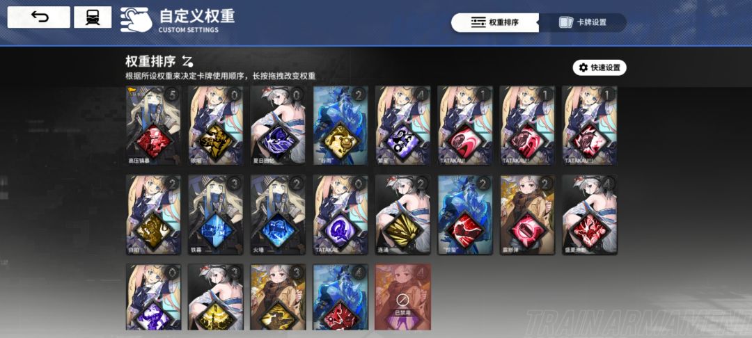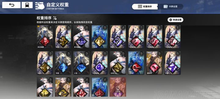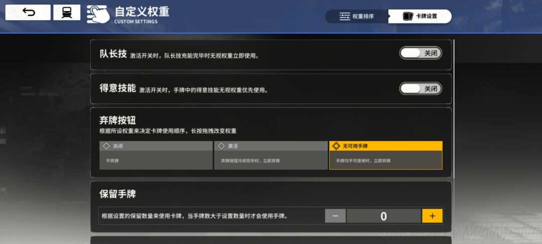 卡牌权重:劫掠者·执锯BOSS需要把水静流的得意技放到星花的优雅前面(第四张图片),其他BOSS卡牌权重不变(第三张图片,鼹鼠重机BOSS需要把水静流得意技禁用掉)