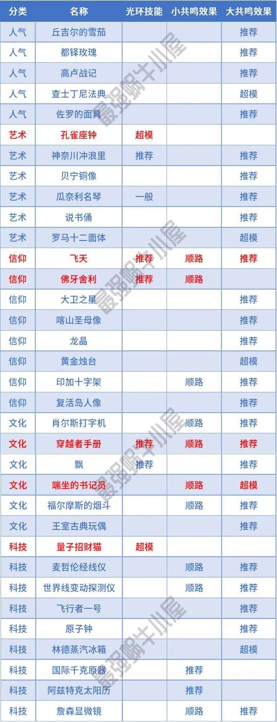 1.上表中标红的贵重品,优先觉醒。
