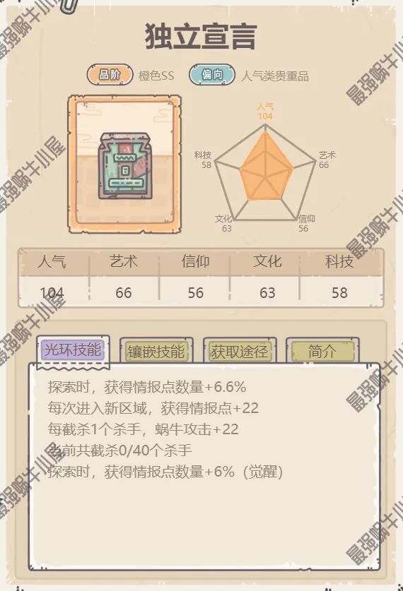 相信到了埃罗和希域的玩家,会觉得这两个图需要的情报点太多了,那么独立宣言也是一个可以考虑的,作为手札货,它很容易满星。