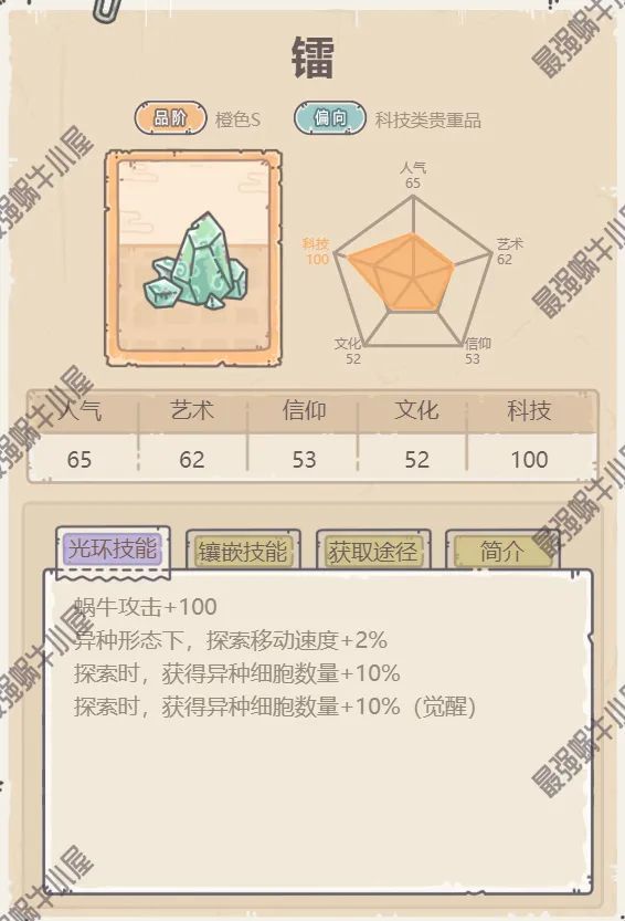 5.蜗牛的基因形态,有的效果需要觉醒贵重品来激活;