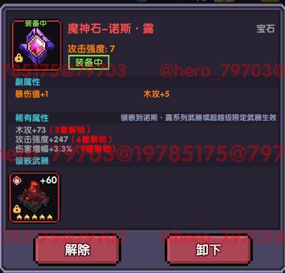 (暗金属性可以考虑有全伤、普伤加成的装备,前期过渡即可,可以打混沌地牢之后,就可以代替掉)