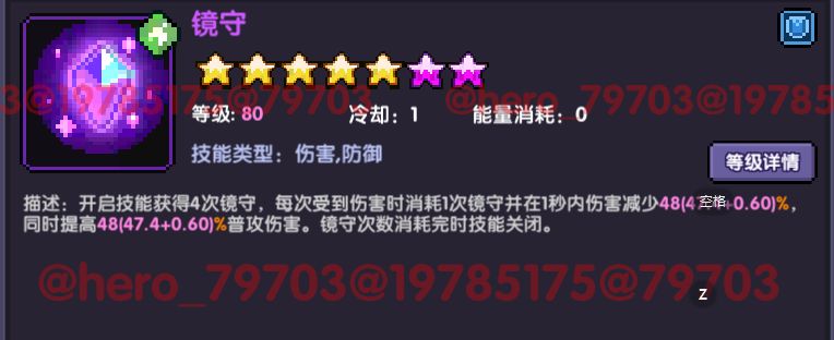 对群将贡品更换为镜守即可(镜守使用需要开启镜守待技能关闭后再次开启,需要受到伤害才能触发)