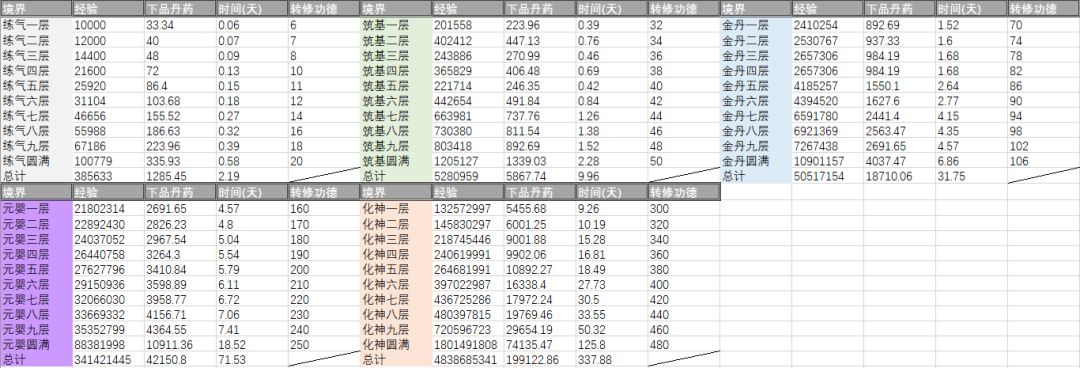 各境界光靠吃药时间