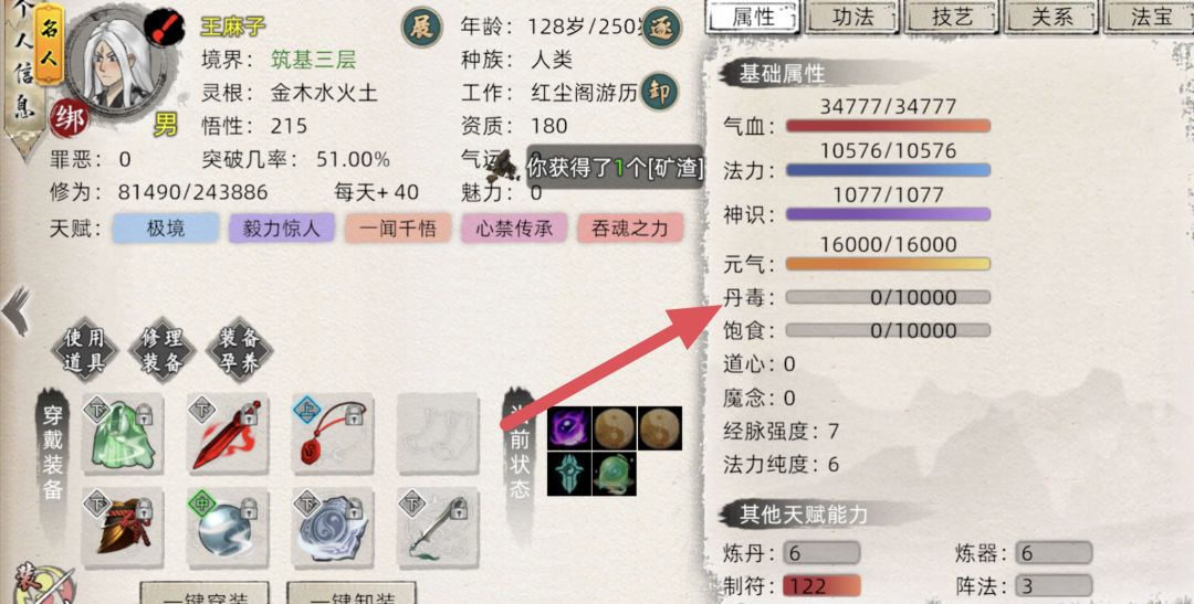 注意:丹毒基础每10秒消散2点,而游戏在计算丹毒消散速度加成时会向下取整,所以要每50%为一梯度的丹毒消散速度生效