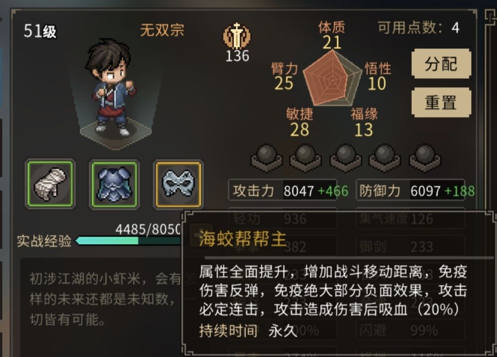 体质、敏捷、臂力无限成长,强力外功,强力BUFF,快速满好感,尽在海蛟帮MOD!