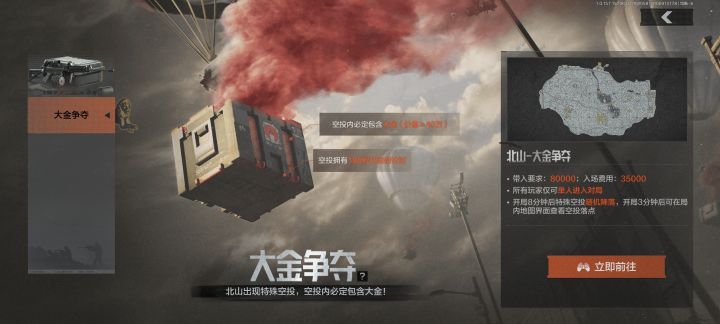 现在打法有俩种①是围绕大金空投去打,另一种远离空投,去其他地方刮地皮会更安全一点,相信大部分都会往空投的方向走,相比较更危险。且空投有180秒的等待期,这个就比较坐牢了,周围的玩家可以很清晰的听到声音,大概率会过来架你,或者直接干拉把你抓了,如何处理,这时候就很考验个人思路了。了,将就随机应变。